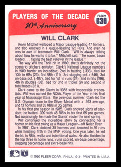Will Clark 1990 Fleer Players of the Decade Series Mint Card #630