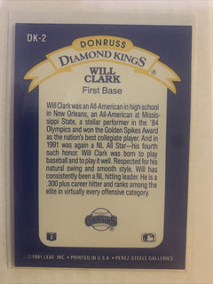 Will Clark 1991 Donruss Diamond Kings Series Card #DK-2