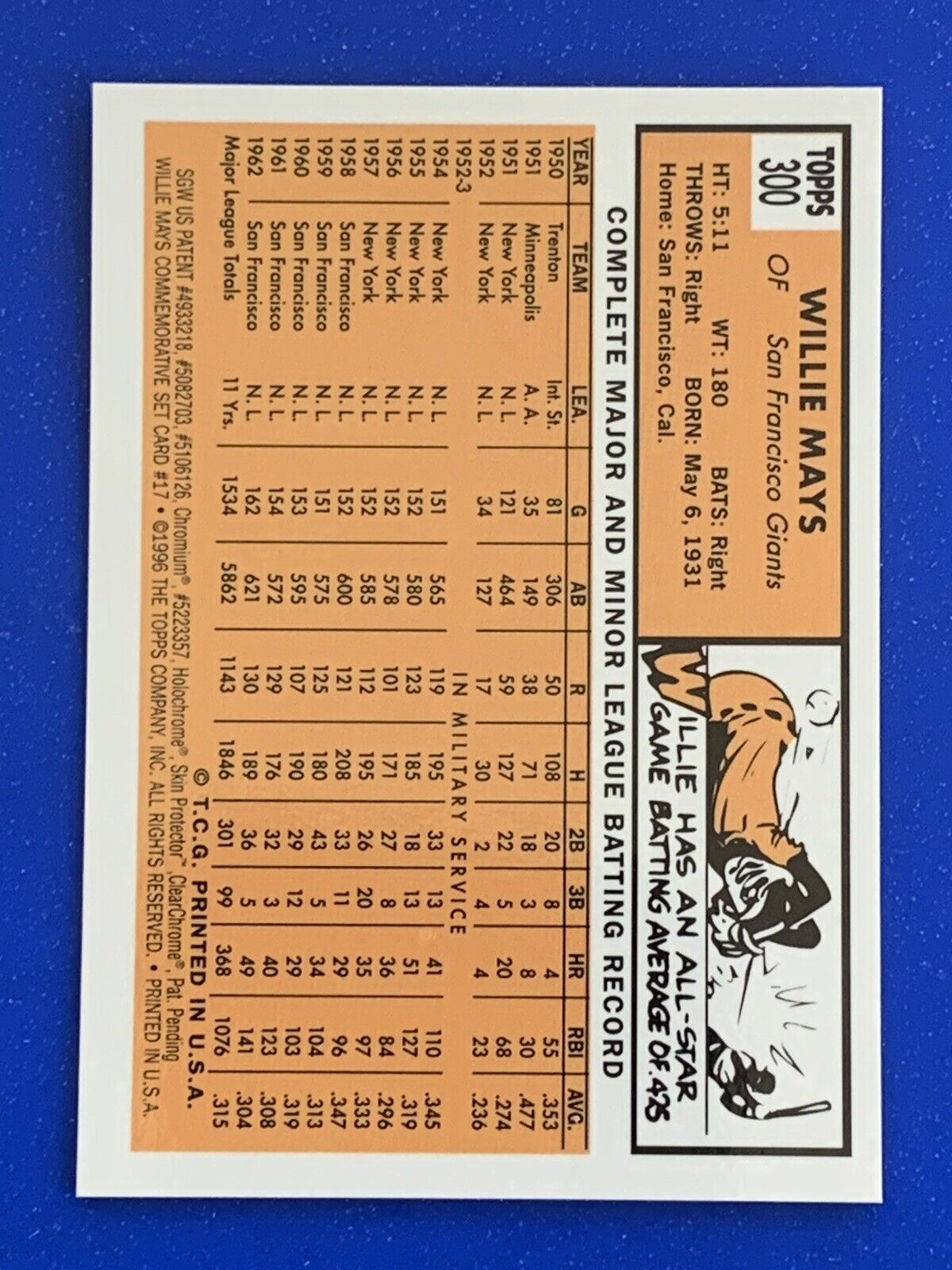 Willie Mays 1996 Topps Finest Commemorative Reprint Card #300