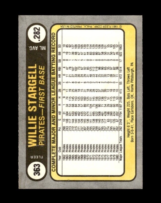 Willie Stargell 1981 Fleer Series Mint Card #363