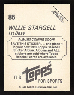 Willie Stargell 1982 Topps Sticker Series Mint Card #85